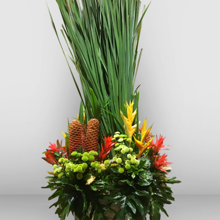 Exotic cut flowers with hot-dog leaves